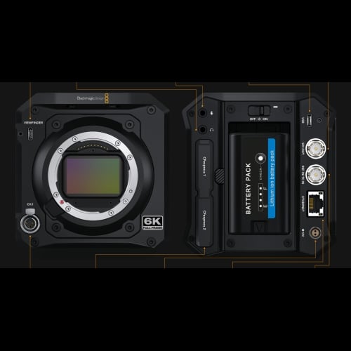 - Accesorios opcionales: Mango de cine Blackmagic URSA, visor electrónico de cine y placa de roseta PYXIS.