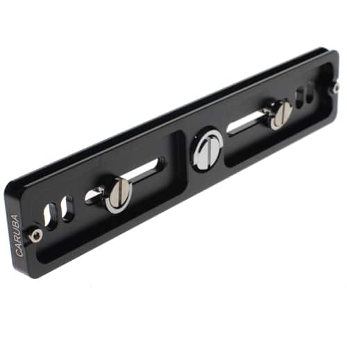 La placa del trípode Caruba se monta en la parte inferior del cuerpo de la cámara mediante uno o más tornillos (suministrados). La placa permite un montaje o intercambio rápido de la cámara en un trípode.