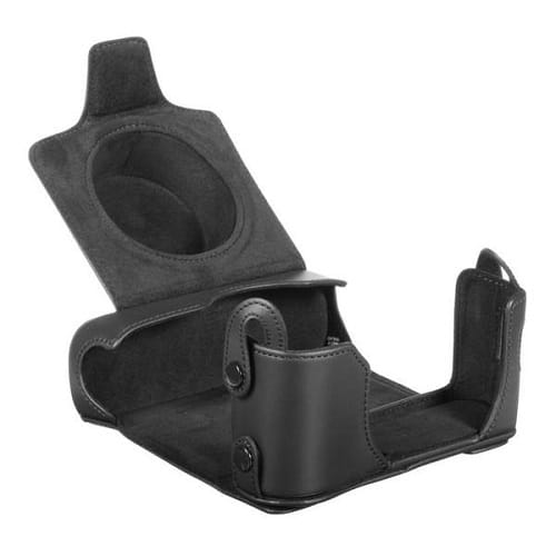 Dedicado a la cámara digital Fujifilm X100 , el estuche de cuero negro LC-X100 tiene un diseño ajustado que protege la cámara de impactos ligeros y arañazos y mejora el agarre al manipular y disparar. Está hecho de cuero para una sensación lujosa y mantiene el acceso a la batería y la ranura para tarjetas de memoria mientras está enchufado.