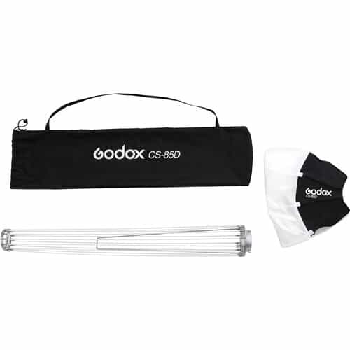 ideal para uso en la cabeza o para aumentar el nivel de iluminación ambiental, la caja de luz de linterna plegable de 85 cm de diámetro de Godox tiene la misma calidad de luz omnidireccional que las «bolas de China» de antaño, pero está construida con materiales duraderos ?? y cuenta con accesorios como un juego de faldón opcional para controlar la dispersión de la viga 270. La linterna tiene un soporte Bowens que se adapta a las luces Godox como las series SL150 II, UL150 y VL, pero también es compatible con muchas otras luces que usan este popular soporte.