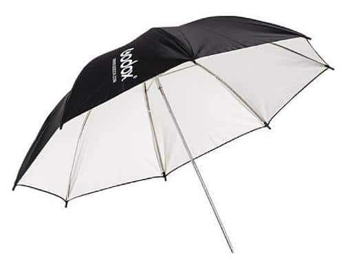 • 2 paraguas de 100 cm (blanco/negro y plateado/negro)
