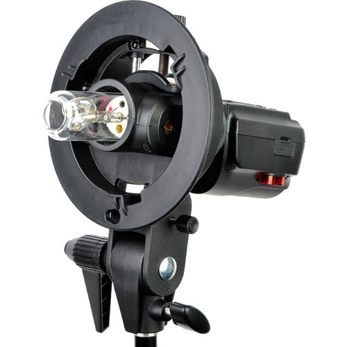 Ajustable para adaptarse a la mayoría de los flashes Speedlite, el soporte Speedlite Godox S-Type para Bowens le permite maximizar el potencial del flash de la cámara mientras le permite usar accesorios Bowens. El soporte soporta el flash vertical u horizontalmente, empleando una presión ligera y sin arañazos en lugar de sujetadores táctiles o cinta adhesiva. Los modificadores de luz, como reflectores, cajas de luz y snoots, se montan delante de la montura, como lo harían en un cabezal de flash Bowens. El soporte se inclina casi 180 grados y tiene un receptor de 5/8″ para el montaje del soporte.