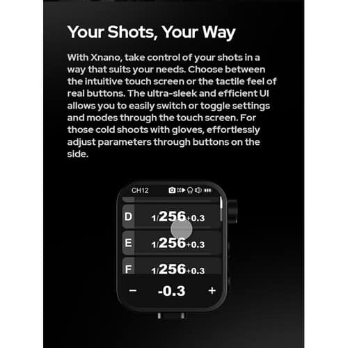 - Experimente un control sin esfuerzo al alcance de su mano con el disparador de flash inalámbrico TTL con pantalla táctil X3 Nano S de Godox. Con un diseño compacto, liviano y simple, el X3 Nano S cuenta con una interfaz de pantalla táctil intuitiva y controles locales para acceder y cambiar su configuración. Como parte del sistema de radio inalámbrico Godox X, el X3 Nano S ofrece un alcance inalámbrico de 100 m con una frecuencia de 2,4 GHz para disparar de manera efectiva y confiable los flashes compatibles. Este modelo es compatible con el sistema TTL de Sony, incluido el soporte para sincronización de alta velocidad de hasta 1/8000 segundos. Los usuarios pueden ajustar la compensación de la exposición con flash de -3 a +3 EV, así como controlar de forma inalámbrica la luz de modelado, la configuración del zoom y más. Hay un puerto USB-C para las actualizaciones de firmware, así como para cargar la batería interna de la unidad. El elegante diseño del dispositivo viene en una pequeña bolsa de almacenamiento que cabe en casi cualquier lugar, para que pueda tenerlo donde quiera que vaya.