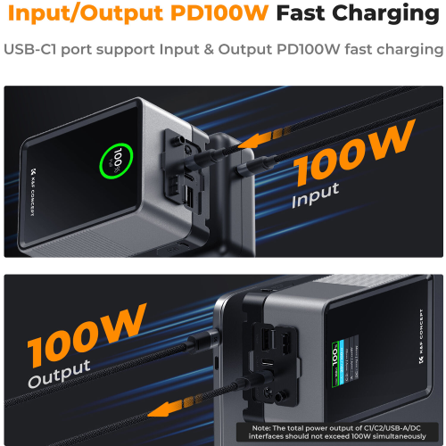Admite carga rápida (Power Delivery hasta 100 W) para recargar la batería o alimentar dispositivos a través de USB-C, ofreciendo una gran versatilidad de uso. - Múltiples puertos de salida