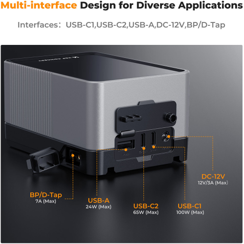 Proporciona una duración de batería confiable para grabaciones a largo plazo, perfecta para iluminar escenas o alimentar cámaras y monitores durante períodos prolongados. - PD100W USB-C