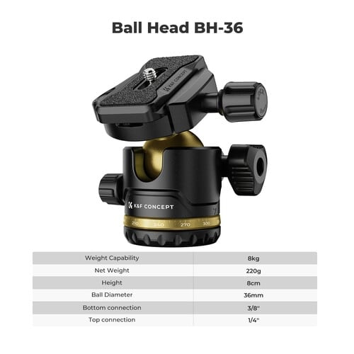 . Trípode de magnesio K&F Concept K234A3 con cabeza de bola BH-36