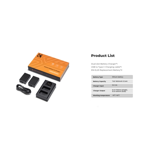 Acerca de K&F CONCEPT Kit de batería KF28.0031 EN-EL25 1600mAh para Nikon y cargador dual