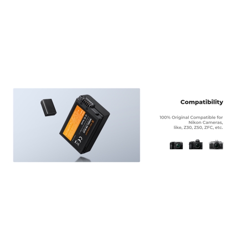 - Amplia compatibilidad. 100% compatible con cámaras Nikon que utilizan baterías EN-EL25 de 1600mAh, así como con varios cargadores originales como Nikon Z30, Z50, ZFC, etc.