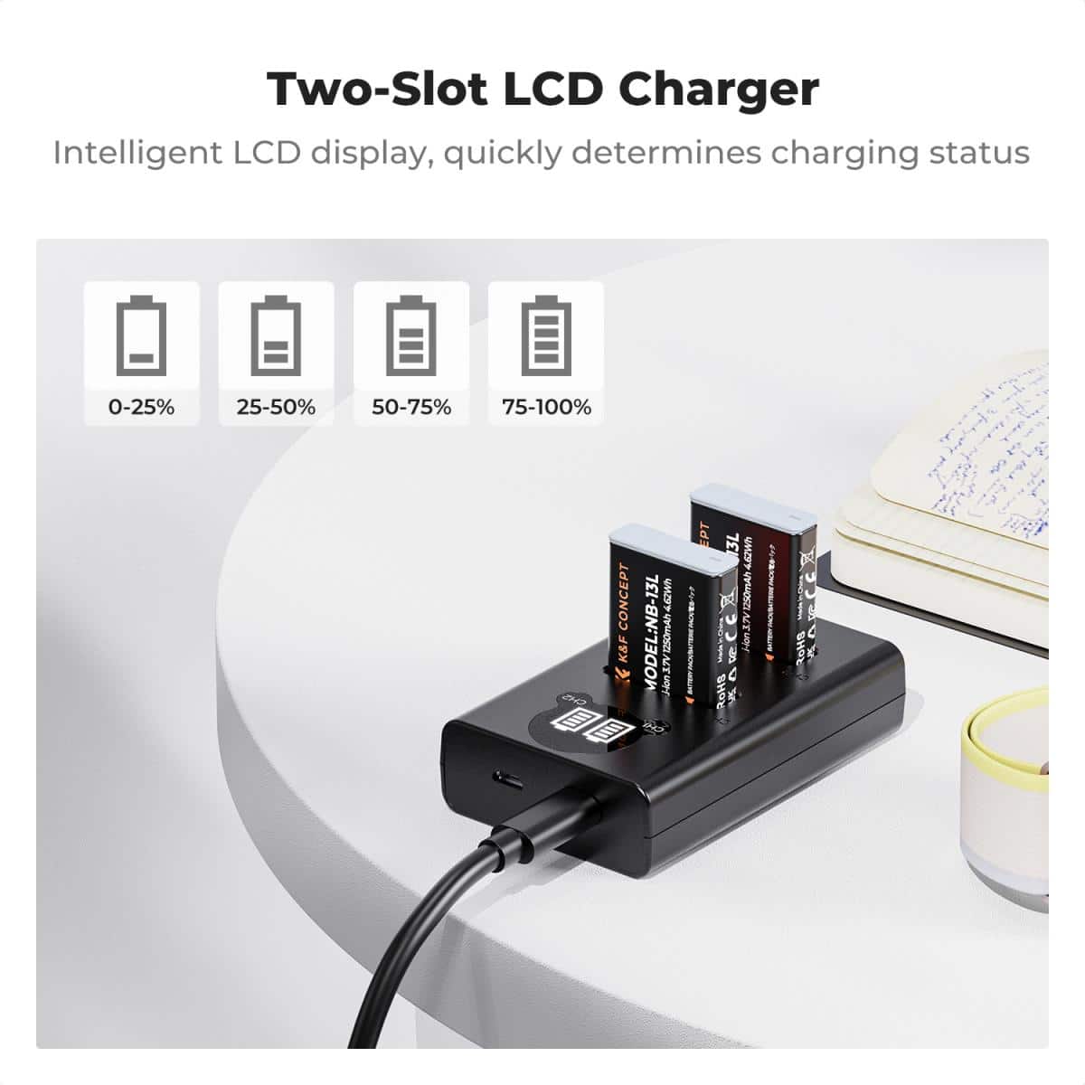 El K&F Concept KF28.0043 Kit de Cargador Doble + 2 Baterías NB-13L está diseñado para proporcionar energía fiable, segura y duradera a las cámaras Canon PowerShot que utilizan baterías NB-13L.