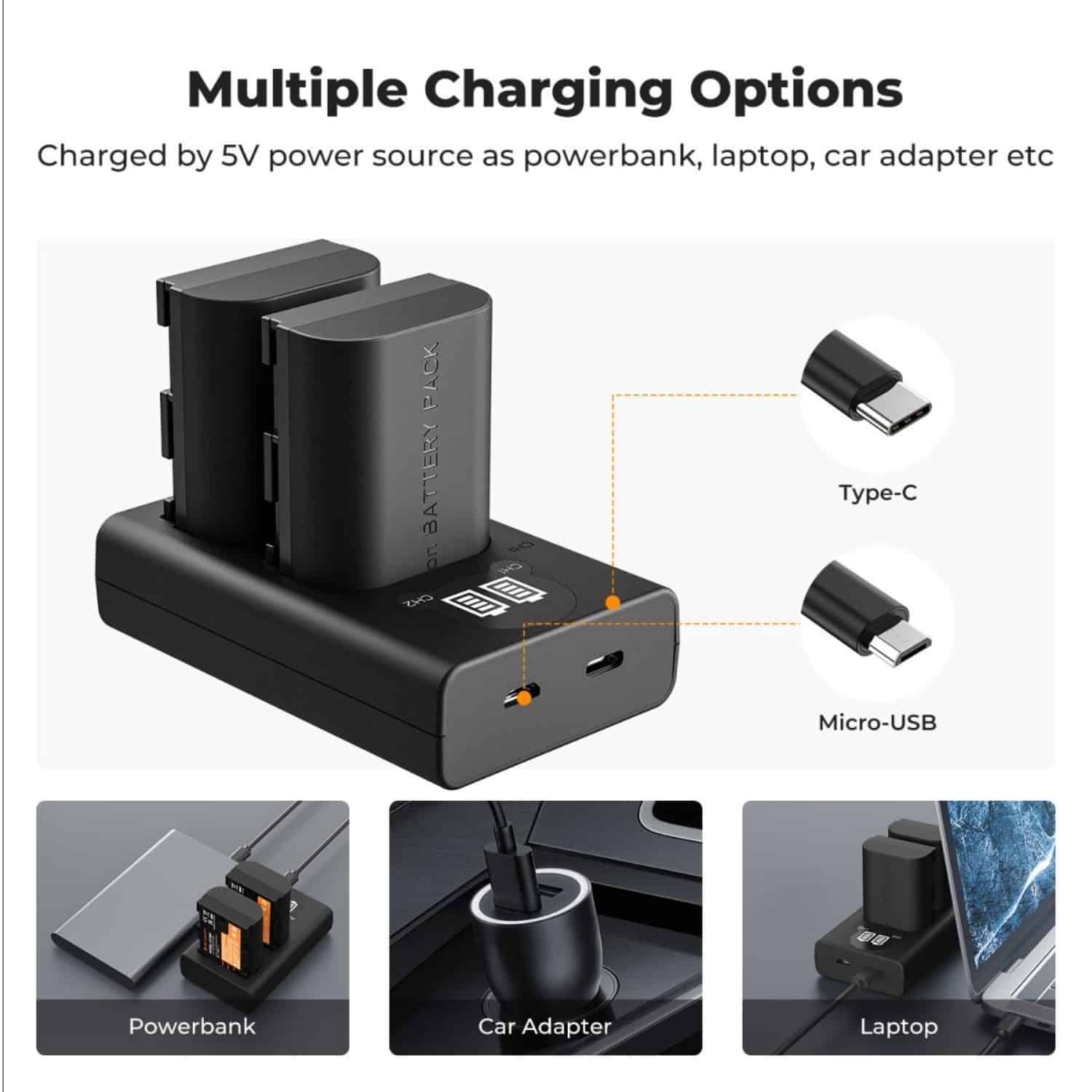 K&F CONCEPT KF28.0093 Kit cargador doble USB-C + 2 baterías LP-E6P