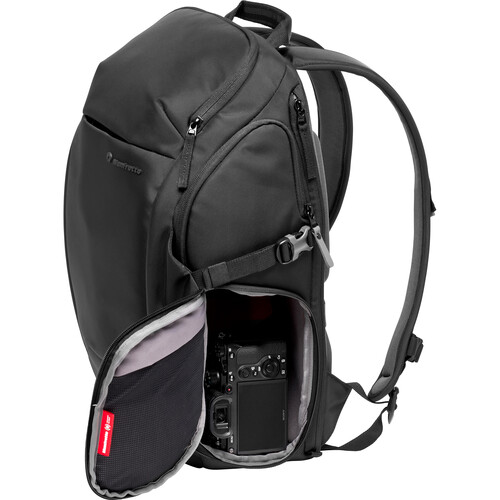 Con la mochila Manfrotto Advanced Travel III 24L, almacena, protege y transporta una DSLR o Mirrorless, con lentes adicionales, accesorios, objetos personales y una tablet o portátil de hasta 15″. Esta mochila de tercera generación recibe una actualización del sistema de protección M-Guard para su equipo fotográfico. Con un interior personalizable, dividido entre material fotográfico y artículos personales y un compartimento de tecnología separado. Este es el bolso ideal para viajar.