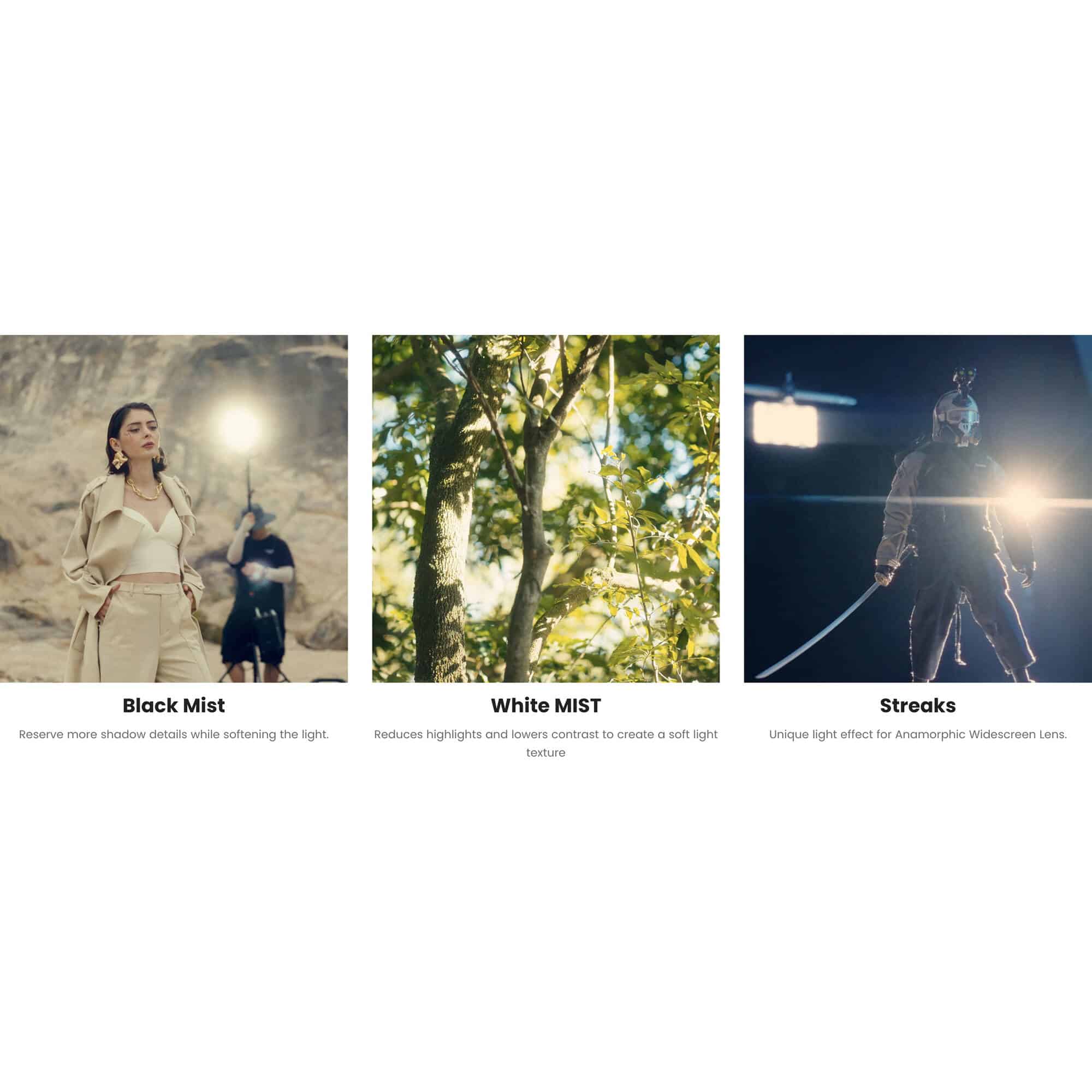 El mecanismo de intercambio rápido permite sustituir filtros con solo pulsar un botón, garantizando fluidez incluso en rodajes dinámicos. El kit incluye un Filtro ND Variable (ND 0.3–2.4) con engranaje MOD 0.8, ideal para cámaras que carecen de ND interno y perfecto para integrar con follow focus o control remoto. Para situaciones donde se requiere la máxima nitidez, el filtro Pure Clear mantiene la transmisión óptica original de la lente.