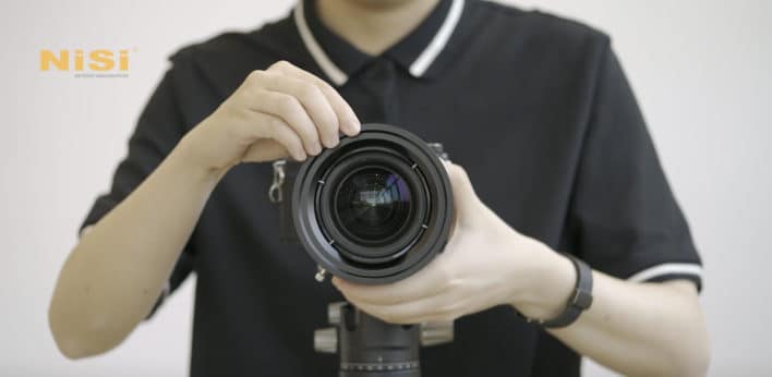 O kit é composto por dois componentes principais, um suporte de filtro frontal e um anel adaptador de suporte de filtro. Pode ser rapidamente montado no anel adaptador após a montagem prévia do anel adaptador na objetiva. O anel adaptador tem quatro guias que assentam na parte inferior do pára-sol da objetiva e, em seguida, rodando o anel traseiro, o adaptador fica apertado à volta da objetiva. Por fim, aperte o botão de bloqueio prateado para garantir que o adaptador está bem preso à objetiva.