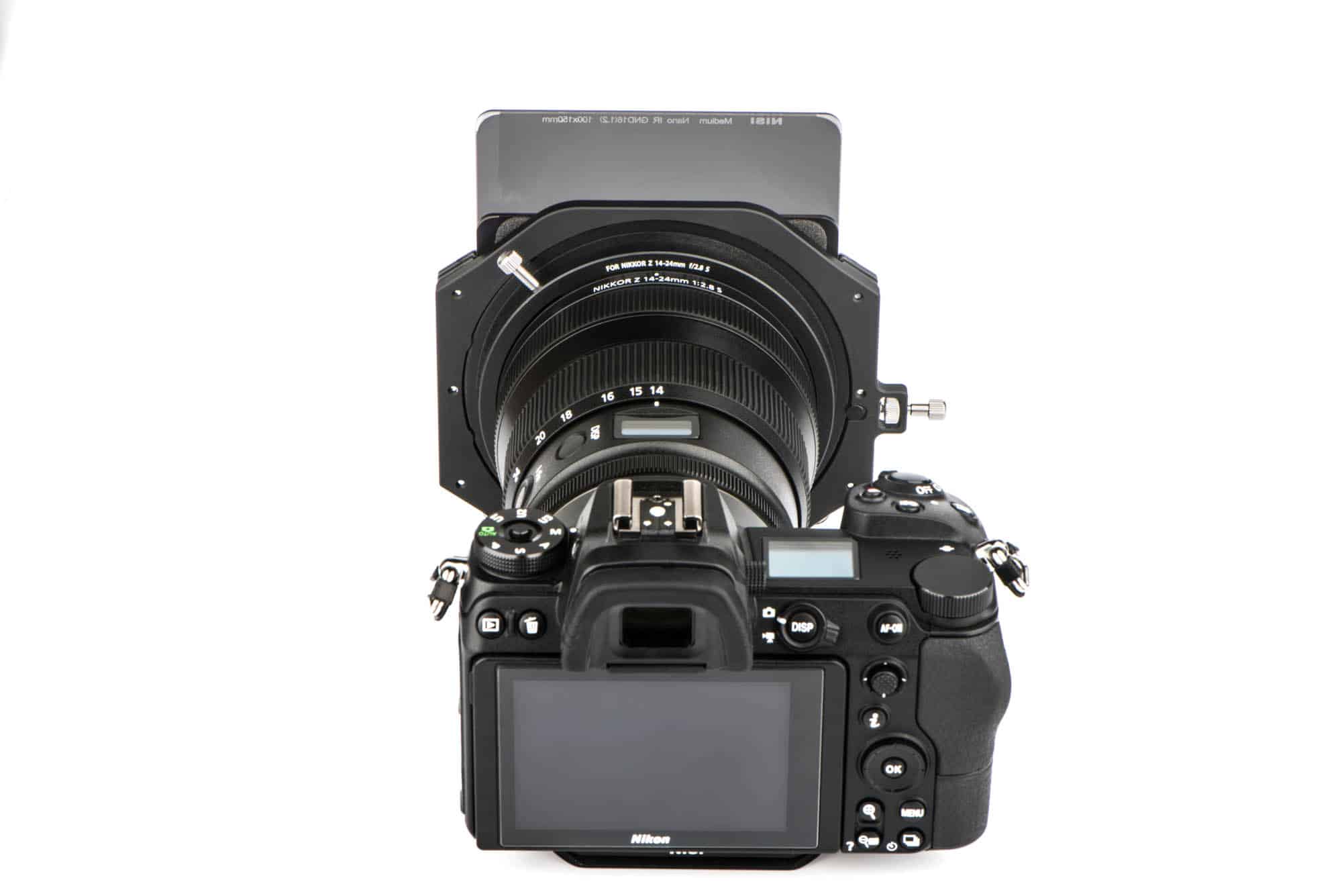 O suporte de filtro NiSi 100mm para Nikon Z 14-24mm f/2.8 S não tem vinhetas mesmo a 14mm. Possui clipes pressionados da esquerda para a direita são retirados do nosso popular suporte V6, em vez do design tradicional superior e inferior. É muito suave inserir e remover filtros.