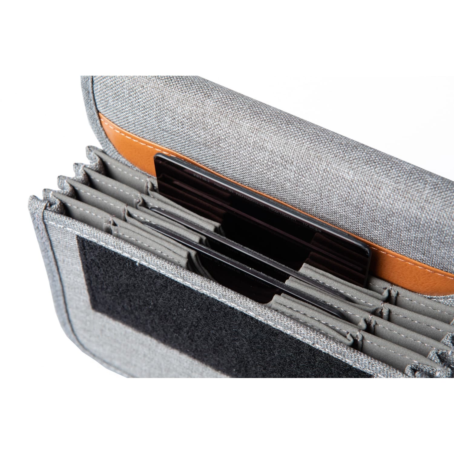 O estojo NiSi Caddy 100mm também pode conter um suporte NiSi 100mm V7 na primeira ranhura da bolsa (reduzindo as ranhuras de filtro para 8).