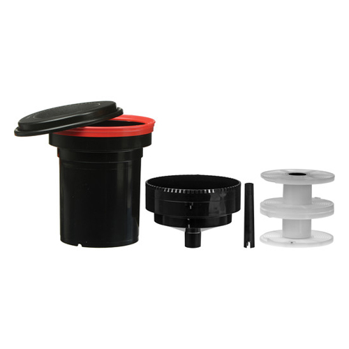 El tanque universal Paterson tiene capacidad para dos rollos de película de 35 mm o un solo rollo de película 120/220. Viene con dos bobinas multiformato para rollos de 35mm, 126, 127, 120 o 220.