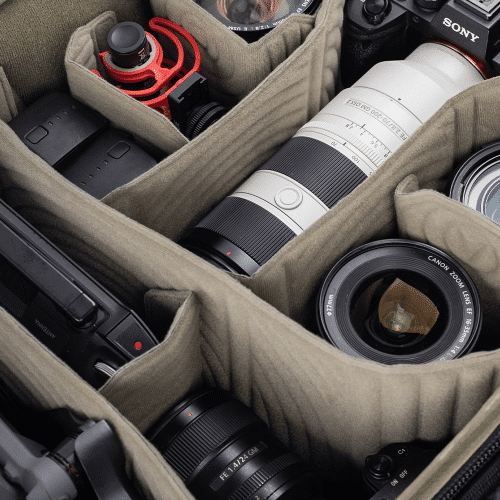 Además, el Camera Insert M viene con la mochila, proporcionando divisores ajustables para una protección segura de su equipo. Este inserto se puede utilizar como una bolsa de hombro independiente, ideal para mantener el equipo seguro en superficies mojadas o condiciones adversas.