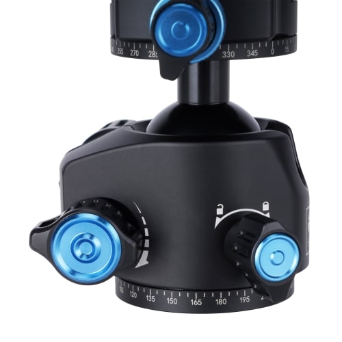 El gran botón de bloqueo de bola garantiza un agarre especialmente firme. La fricción se controla mediante un botón separado. Esto le permite ajustar la movilidad de la cabeza individualmente a su cámara. Esto evita, por ejemplo, un aflojamiento demasiado fuerte de la pelota y, por lo tanto, una inclinación involuntaria de la cámara.