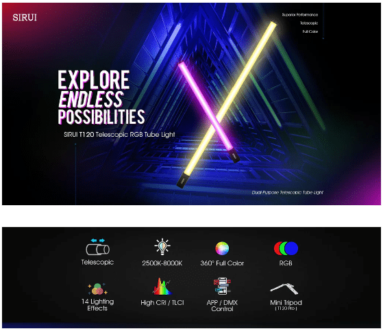 El SIRUI DUKEN T120 redefine la iluminación portátil profesional al combinar un diseño telescópico con color RGB completo y conectividad inteligente.