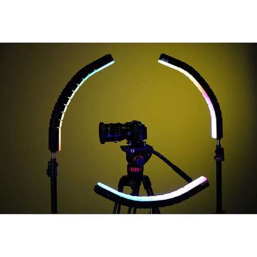 - Crea configuraciones de iluminación avanzadas y únicas en el estudio o en el sitio con este kit de 2 luces LED RGB plegables de SIRUI. Cada tira de luz tiene ocho articulaciones ajustables que pueden iluminar un objeto desde varios ángulos. Los extremos de las luces cuentan con un punto de conexión interconectado y de liberación rápida para alinear varias unidades en una serie y crear una variedad de formas de iluminación diferentes. Amplíe aún más las posibilidades creativas con múltiples modos de selección de color, una amplia gama de temperaturas de color y clasificaciones de precisión de color de CRI 96 y TLCI 98. Dieciséis modos de efectos especiales transforman la versatilidad del color de la luz en escenas para el trabajo de video.