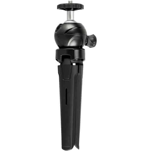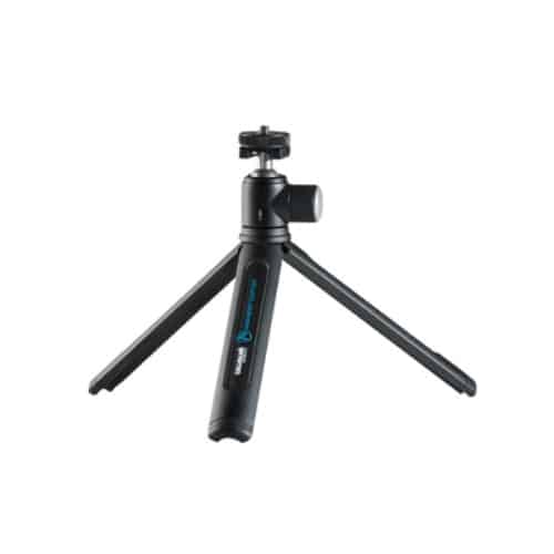 Compacto y pequeño, así es como se puede describir el mini trípode SIRUI 3T-05K, en dos palabras. Debido a su diseño compacto, es extremadamente estable y puede soportar cargas pesadas. Además de teléfonos inteligentes y cámaras compactas, también lleva fácilmente una cámara de tamaño mediano. Cuando se usa con cámaras de acción o en video, las patas del trípode se pueden plegar y usar como agarre. La cabeza de la caña se puede inclinar en todas las direcciones y tiene una muesca vertical de 90°. El trípode y la cabeza están hechos de plástico y la bola es de aluminio.