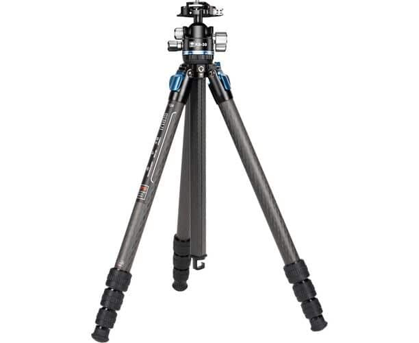 Una de sus características más destacadas es la columna central con forma triangular, que mejora la resistencia a la torsión y puede montarse invertida para capturas a ras del suelo. Cada pata se ajusta individualmente en tres ángulos preestablecidos, permitiendo estabilidad incluso en superficies irregulares.