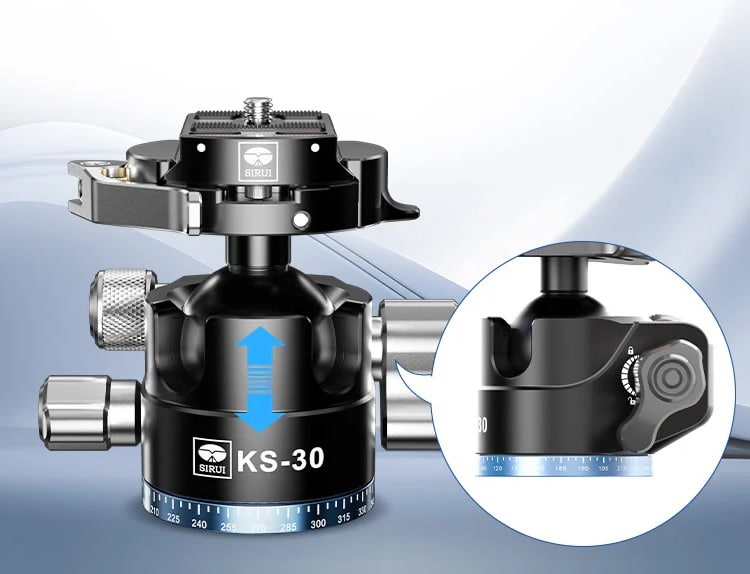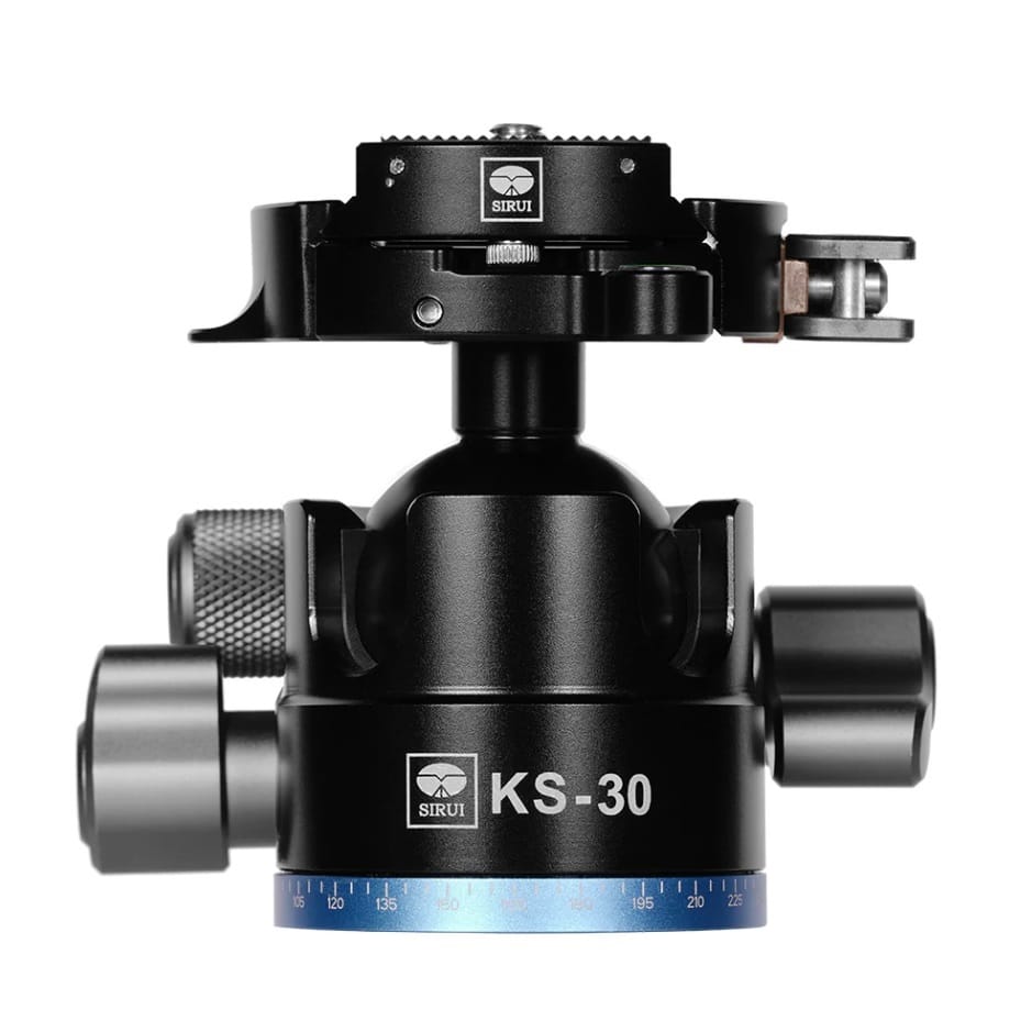 La rótula de bola KS‑30, parte de la Serie Low Gravity, ofrece un centro de gravedad más bajo, aumentando la estabilidad y reduciendo la vibración — ideal para exposiciones largas y fotografía con poca luz. Dispone de un gran mando de bloqueo principal y otro independiente para el control de fricción, adaptándose fácilmente al peso de tu equipo.