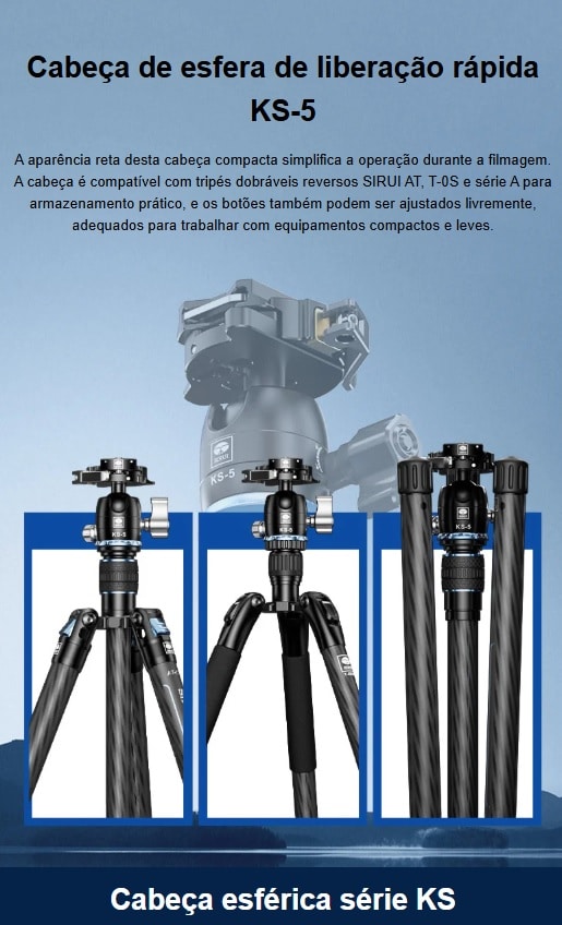 El Sirui T-025SK + KS-5 está diseñado para fotógrafos y creadores de contenido que buscan portabilidad sin sacrificar estabilidad. Perfecto para viajes, fotografía de paisaje, urbana o macro, este trípode ofrece un equilibrio excelente entre tamaño, ligereza y rendimiento profesional.
