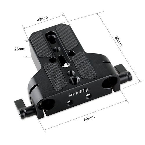 Esta placa base de perfil bajo es una placa base simple y liviana para las cámaras populares de hoy, como Sony FS7, Sony A7 series, Canon C100 / C300 / C500, etc. /4 «-20 tornillo. La placa base tiene orificios de varilla espaciados de 15 mm de diámetro y 60 mm que le permiten montar un enfoque, una carcasa mate, una montura de lente u otros accesorios. Ha sido diseñado específicamente para mantener el peso bajo y permitir que el operador use la hombrera incorporada del FS7, minimizando la cantidad de peso adicional y el equipo requerido para un equipo. Con roscas de 1/4»-20 y 3/8»-16 en la parte inferior, esta placa base se puede acoplar a cualquier trípode.