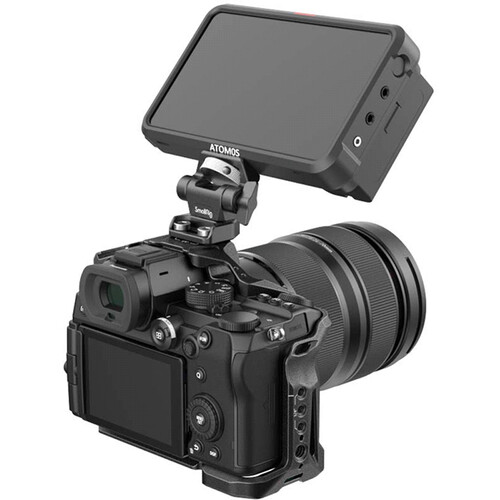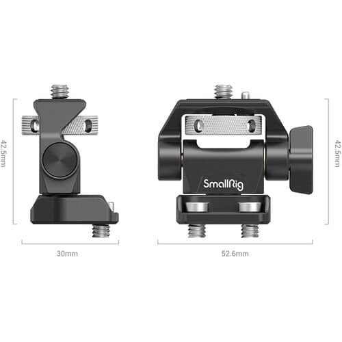El soporte giratorio de inclinación ajustable para monitor SmallRig se conecta al armazón de la cámara o al equipo mediante dos tornillos de 1/4″-20. Compatible con un monitor integrado que pesa hasta 3.3 lb, este soporte gira 360° y se inclina 170°, lo que le permite colocar su monitor en el mejor ángulo de visión.