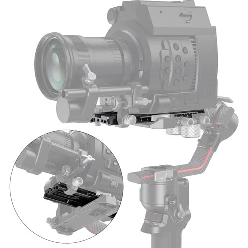 Monta una cámara más grande en tu cardán DJI RS 2 con la placa de liberación rápida extendida SmallRig. La placa mide 4 cm más que la placa RS 2 original para proporcionar más espacio para cámaras más grandes y para montar componentes opcionales, como un soporte de riel para un motor de enfoque de seguimiento, un motor de zoom o una montura de lente.