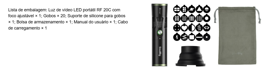 - 1x SmallRig RF 20C Luz LED portátil com foco ajustable