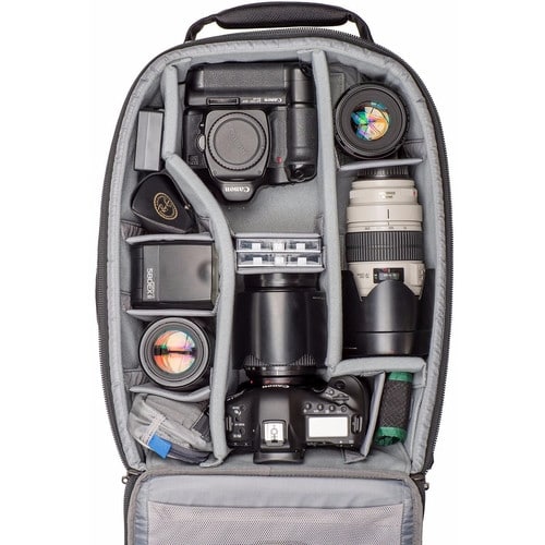 - Puede acomodar 2 DSLR, 5-6 lentes y accesorios.