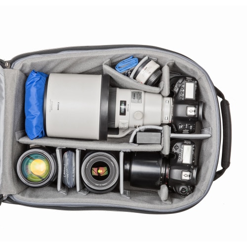 Admite dos DSLR con lentes acoplados, de dos a cuatro lentes adicionales, una computadora portátil de 17 «, una tableta de 10 » y accesorios relacionados. El tamaño máximo de la lente es de 500 mm f/4 separado, o 400 mm f/2.8 fijo con el parasol invertido.
