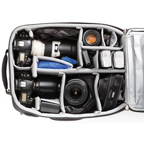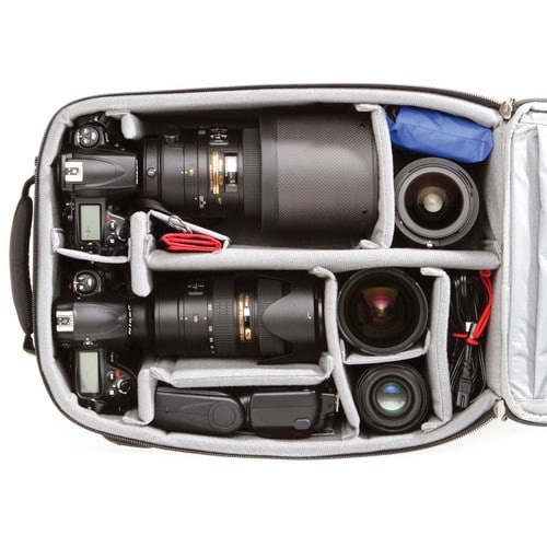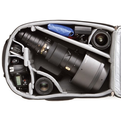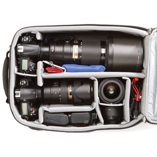 - Dos DSLR profesionales con lentes zoom estándar de 6 a 8. Los bolsillos de acceso rápido le permiten llevar una computadora portátil de 17 «y un iPad; Puede llevar una computadora portátil de 17» y un iPad en un compartimento separado, integrado y con cremallera; Acomoda un 600 mm f/4 sin parte superior suelta o un 500 mm f/4 con el cuerpo montado
