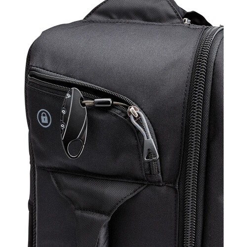 - No parece una mochila de cámara tradicional. El cable de seguridad incluido y el candado de combinación le permiten bloquear la bolsa de su computadora portátil o artículos inamovibles. Este cable de seguridad es muy efectivo cuando tiene que dejar su equipo por un período de tiempo en una sala de prensa, salón de bodas, habitación de hotel u otra área abierta
