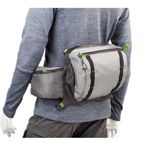 Entre el bolsillo del panel frontal y el compartimento principal, un bolsillo con cremallera se expande para acomodar hasta 17 litros de equipo que puede incluir elementos esenciales de supervivencia o artículos adicionales para un estudio fotográfico móvil. Dividida en tres secciones, la sección del bolsillo de refuerzo más cercana a la espalda del usuario está diseñada para acomodar una computadora portátil o una mochila de hidratación de 11.2 «e incluye una salida para un tubo para beber. La sección puede proteger una tableta de 10,6» o artículos personales con un recorrido mínimo durante el transporte. Capaz de una mayor expansión, la sección más adyacente al panel frontal es adecuada para ropa plegable, guantes, gorro o toalla.