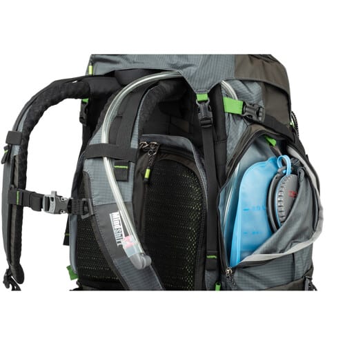 La parte inferior de la mochila, la bolsa de la cámara, gira independientemente de la parte superior, para un acceso instantáneo a su espacioso interior de 10L que contiene un kit sin espejo o DSLR con tres a cinco lentes o una cámara sin agarre con un 70-200 mm f / 2.8 adjunto, además de espacio en la tableta 10,6″. La parte superior de 40L contiene artículos personales como comida y ropa, con una sección de cuello superior que se puede expandir para proporcionar seis litros adicionales de almacenamiento. Una variedad de bolsillos internos y externos le brindan un amplio espacio para organizar todo. Un sistema de arnés de 10 puntos le permite ajustar cómo y dónde distribuir la carga para una comodidad óptima.