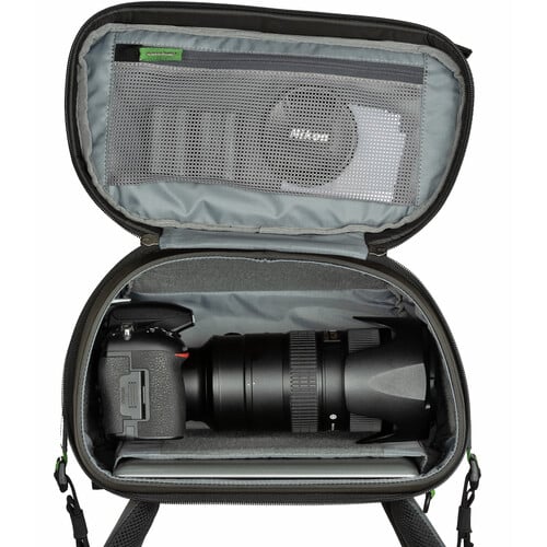 - Tiene capacidad para un kit sin espejo o DSLR con 3-5 lentes o una cámara sin agarre con 70-200 mm f/2.8 adjunto.