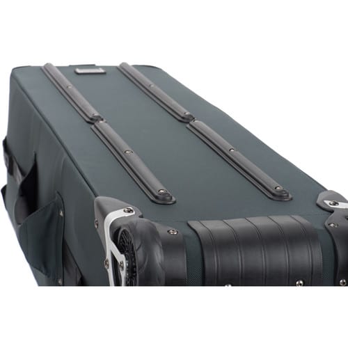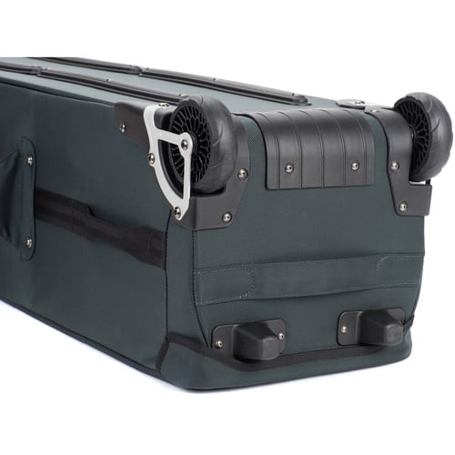 - La construcción de nailon y la parte inferior recubierta de poliuretano de este estuche de transporte proporcionan un alto grado de resistencia a la intemperie. La durabilidad general del Video Tripod Manager 44 se complementa aún más con pasos de rueda altos que protegen las esquinas de los impactos en escaleras mecánicas y aceras, y si se desgastan con el tiempo, el usuario puede reemplazar las ruedas.