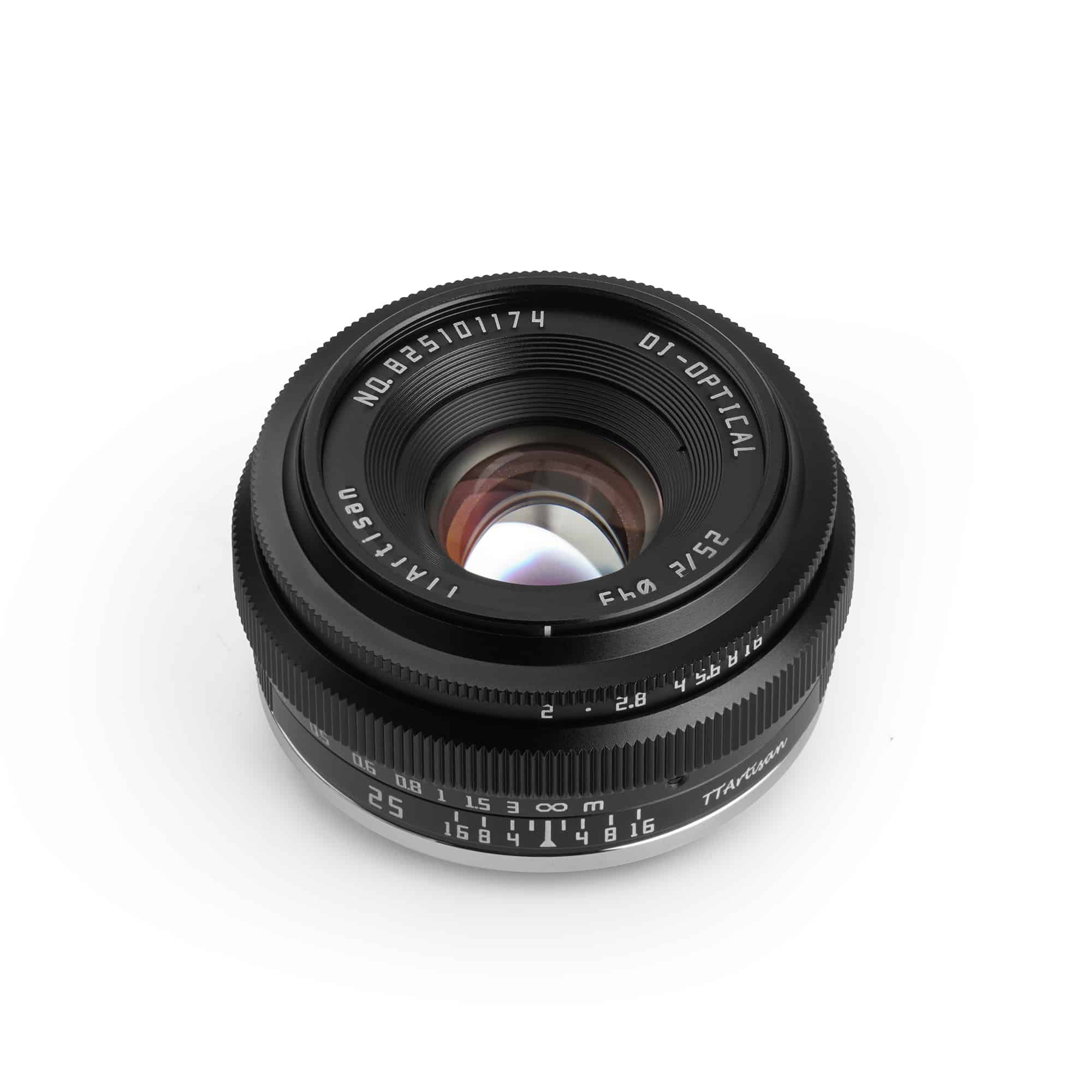 - A lente prime compacta foi concebida para câmaras sem espelho com sensores APS-C ou Micro 4/3 e oferece uma distância focal de 25mm, equivalente a 37,5mm (APS-C) e 50 mm (M43).