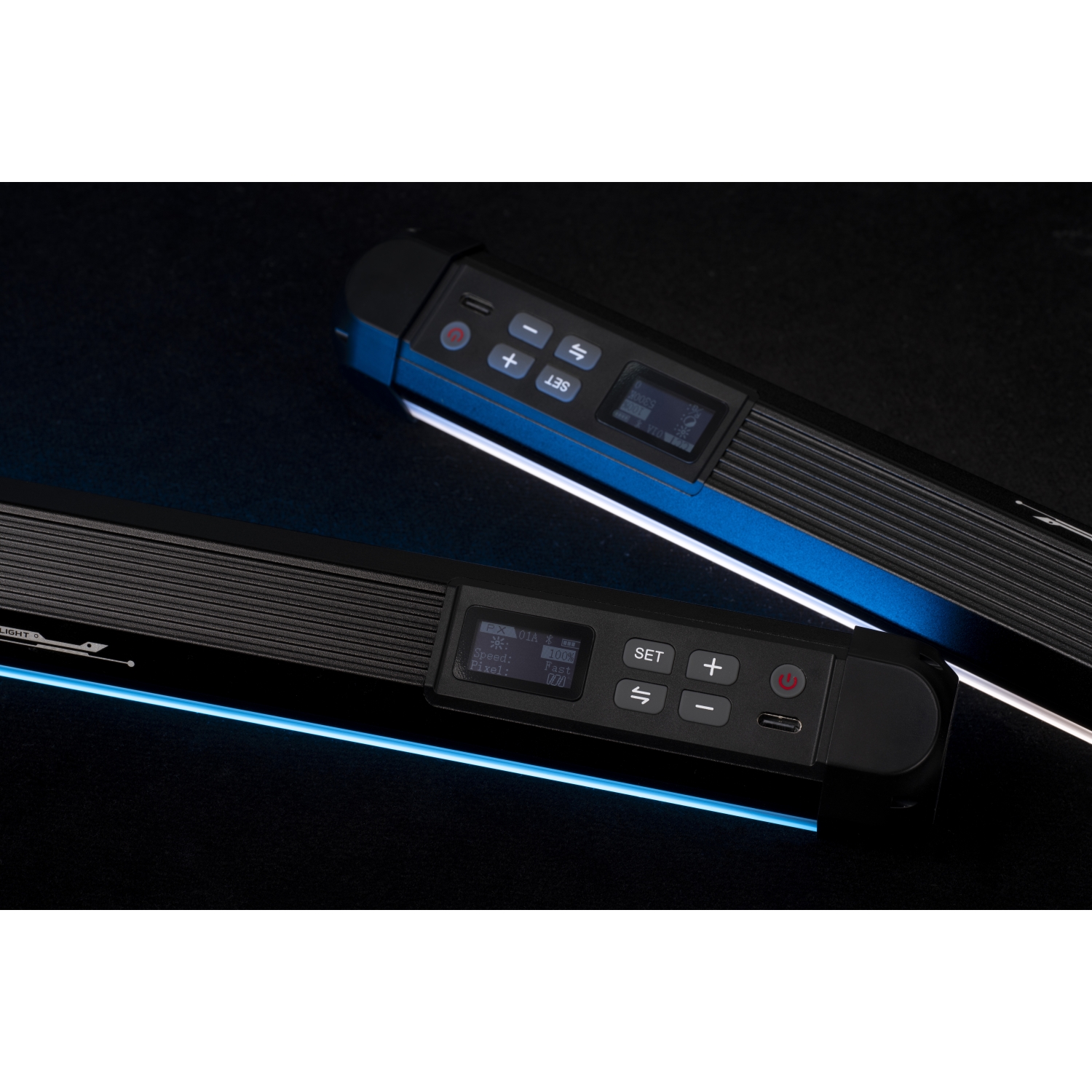 - Usa las 2 barras juntas para iluminación 3D o separadas como key/fill light