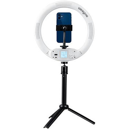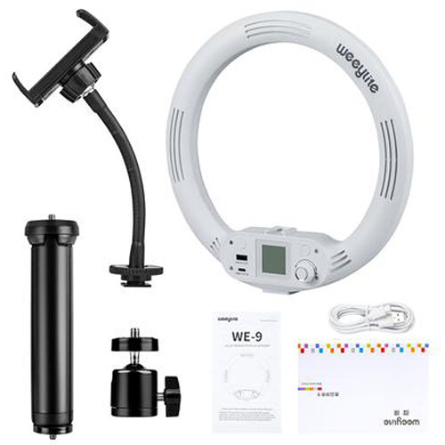 El WE-9 también tiene otra característica valiosa, un modo RGB que ofrece al usuario una selección de 360 colores y con ajustes de tono, saturación e intensidad que brinda acceso a literalmente millones de colores personalizados para agregar un toque personal a su trabajo. Ideal para selfies, el anillo de luz tiene una abertura central de 26 cm, lo que le permite usar el soporte para teléfono inteligente suministrado para disparar a través de él y obtener un efecto suave, casi sin sombras, que favorece su cutis.