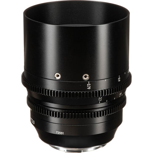 A lente tem um ângulo de visão de 28,4° e engrenagens padrão de cinema 0,8Mod no foco e na íris para controles manuais intuitivos. A distância do foco e as marcas da íris são posicionadas em ambos os lados da lente em metros e pés. A distância focal de 85 mm tem uma distância mínima de foco de 2,6 pés. Uma rosca de filtro de 82 mm permite que conecte filtros de sua escolha para personalizar ainda mais a qualidade da luz e os efeitos da lente.