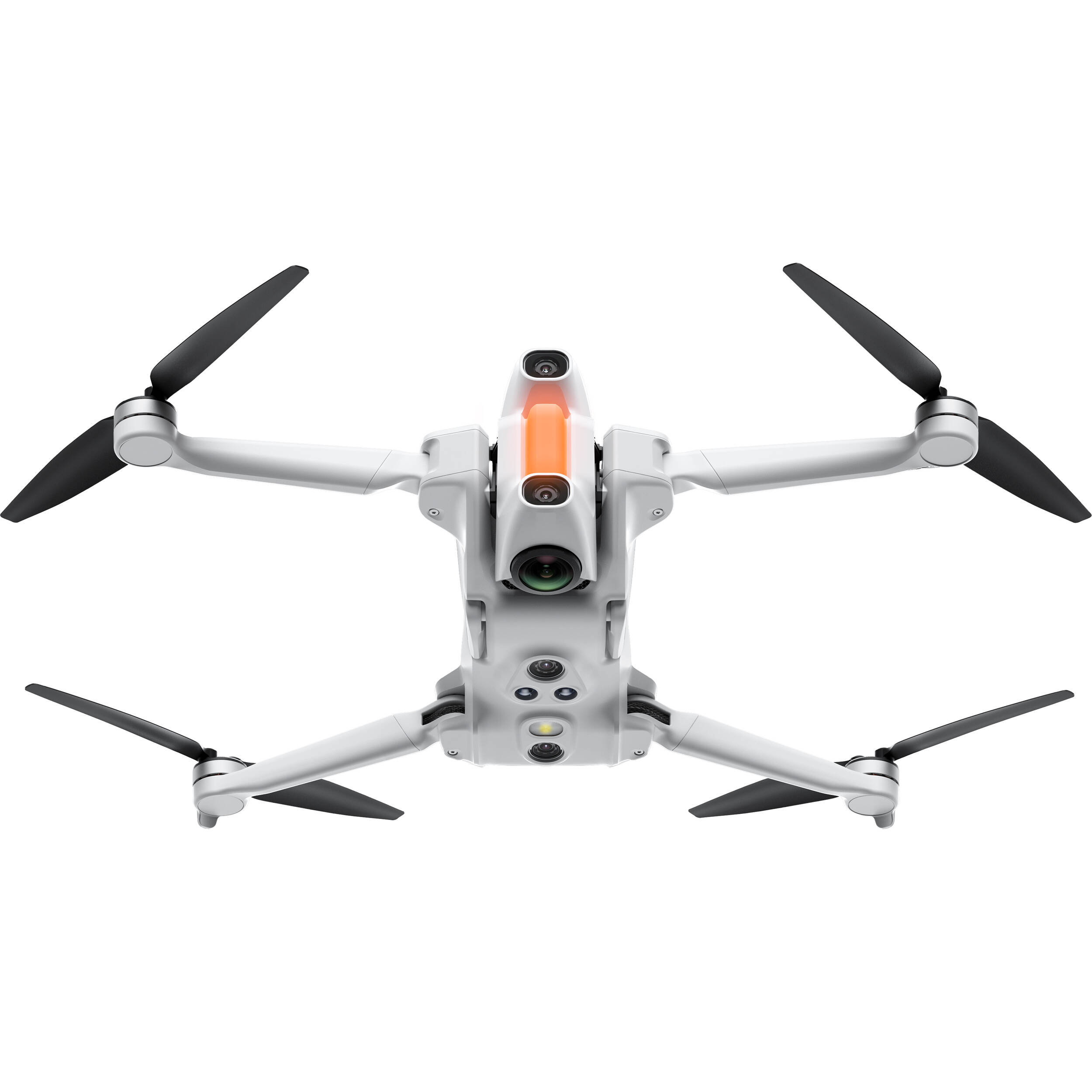 A câmara 360°, equipada com sensores CMOS duplos de 1/1,28″ e lentes duplas f/2.2, elimina o drone da imagem final, produzindo um efeito visual limpo e cinematográfico. O sistema Deep Track 360° garante um seguimento contínuo e preciso do alvo, mesmo em movimento ou em cenários complexos.