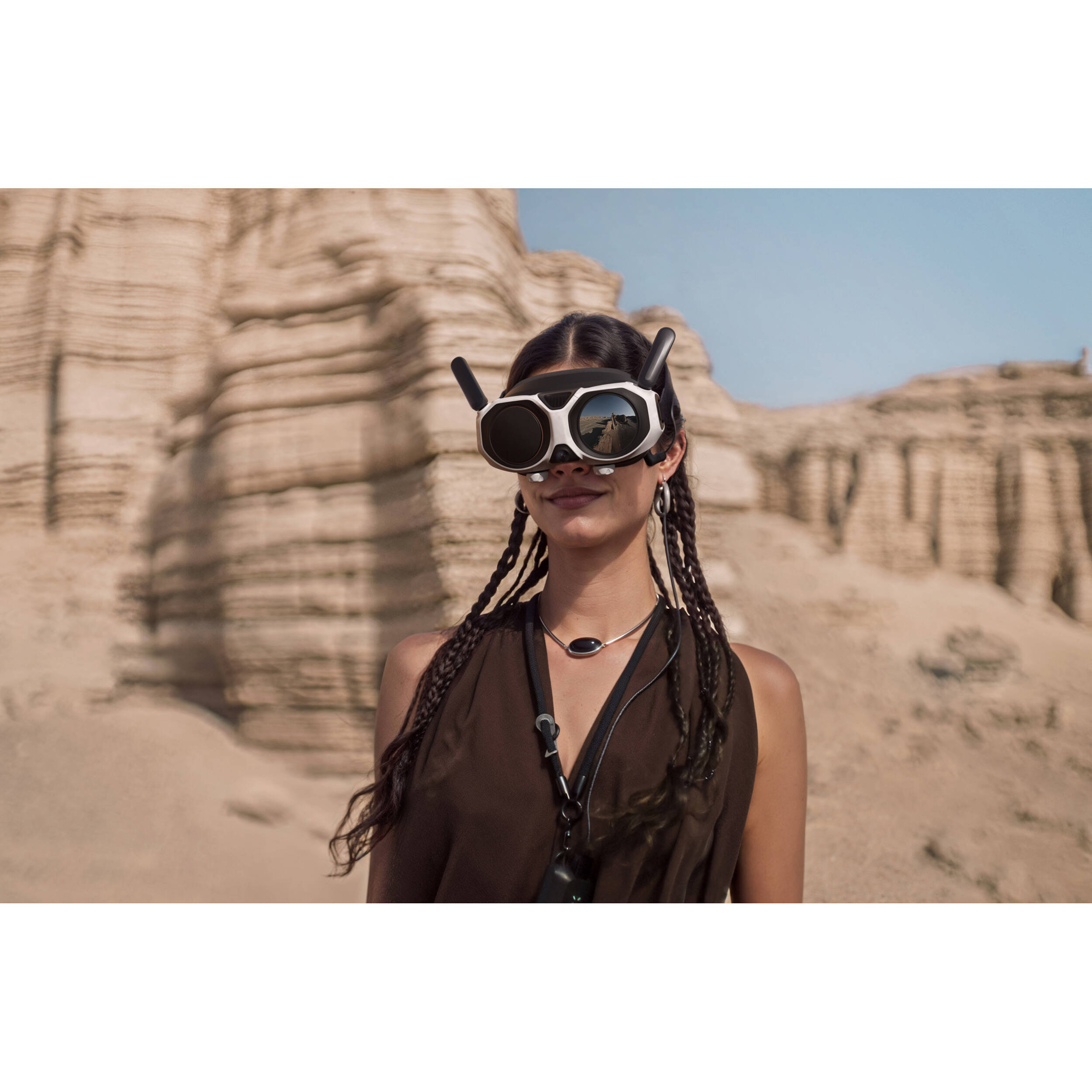 Os Óculos Vision FPV elevam a experiência de pilotagem com rastreamento de cabeça, permitindo observar o ambiente em tempo real como se estivesse no cockpit. O modo FreeMotion mantém o drone orientado de forma segura enquanto o utilizador explora visualmente o espaço à sua volta.
