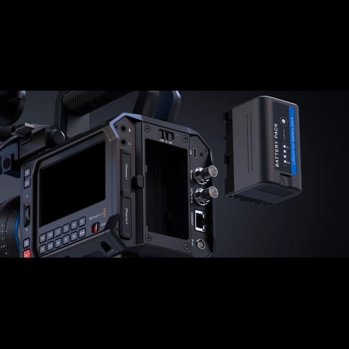 - Acessórios Opcionais: Blackmagic URSA Cine Handle, Cine EVF, e PYXIS Rosette Plate.