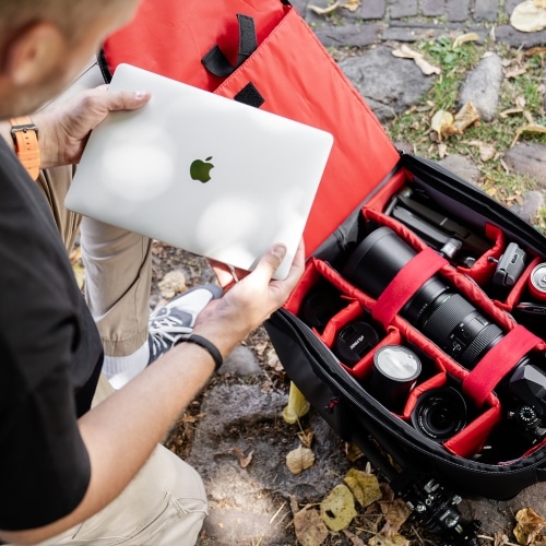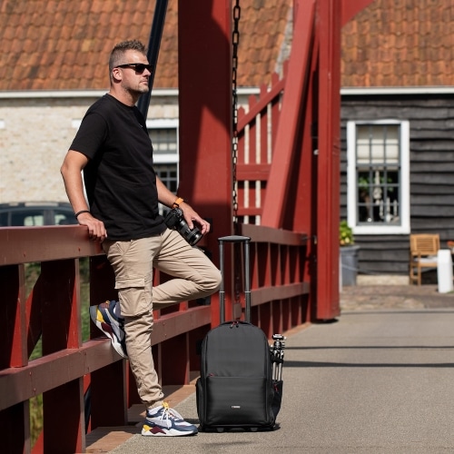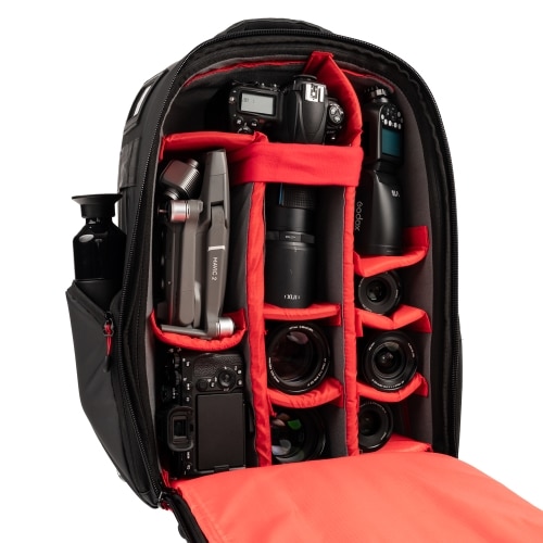 - O interior espaçoso inclui divisórias ajustáveis que permitem configurar o espaço conforme o equipamento utilizado, enquanto o exterior em nylon oferece proteção contra intempéries. Ideal para câmaras DSLR, mirrorless, objetivas, drones compactos, acessórios e portátil até 17″. Uma solução prática e robusta para transporte profissional em mobilida