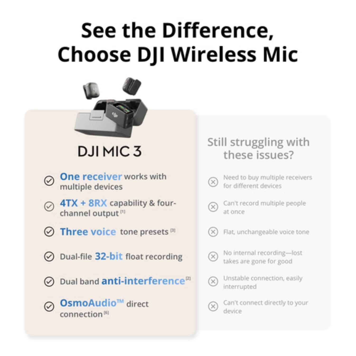 - Compatibilidade total com DJI Mic 3 Wireless System
