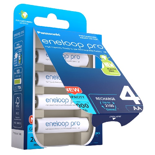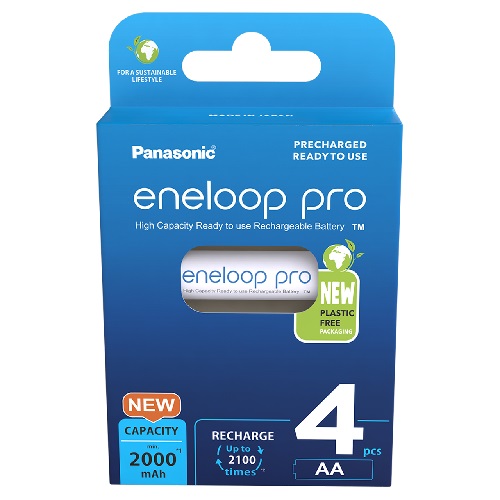 Esta embalagem de 4 pilhas Ni-MH recarregáveis AA eneloop da Panasonic tem uma capacidade mínima de 2000mAh e podem ser recarregados até 2100 vezes.
